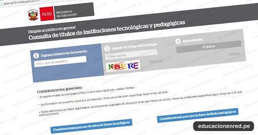Aquí podrás consultar los títulos de institutos de educación superior que figuran en el Registro Nacional de Certificados, Grados y Títulos a cargo del Ministerio de Educación, creado a partir de noviembre de 2015 en el marco de la Ley N.° 30512, Ley de Institutos y Escuelas de Educación Superior y de la Carrera Pública de sus Docentes.